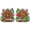 Kit contains: 14ct plastic canvas, floss/12 colors, needle,  chart for two scenes and instructions.  9x9 cm