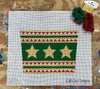Stocking Cuff - Gold Stars Green Background/Triangle Stripes